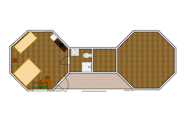 Отдельно стоящий дом на два номера. Однокомнатный 3-х местный номер с совместной верандой на 2-а номера.