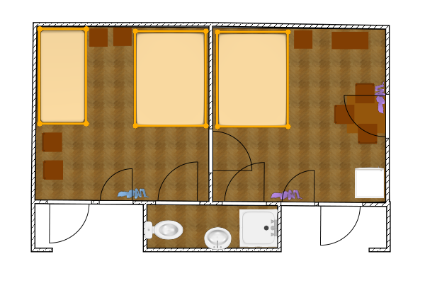 Двухкомнатный 5-ти местный номер в общем корпусе-срубе.